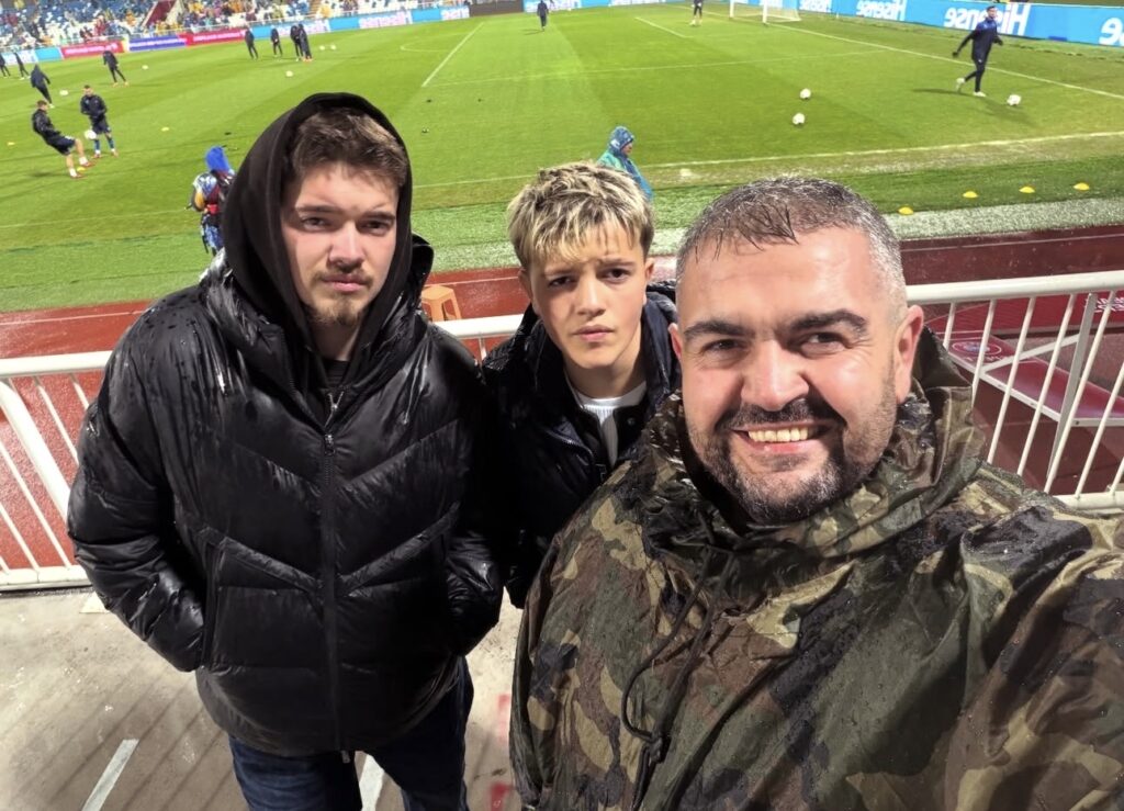 Megjithatë, pavarësisht motit të keq, aktori i njohur nuk ka hezituar të jetë prezent në tribuna, duke treguar mbështetjen e tij të palëkundur për ekipin kombëtar.