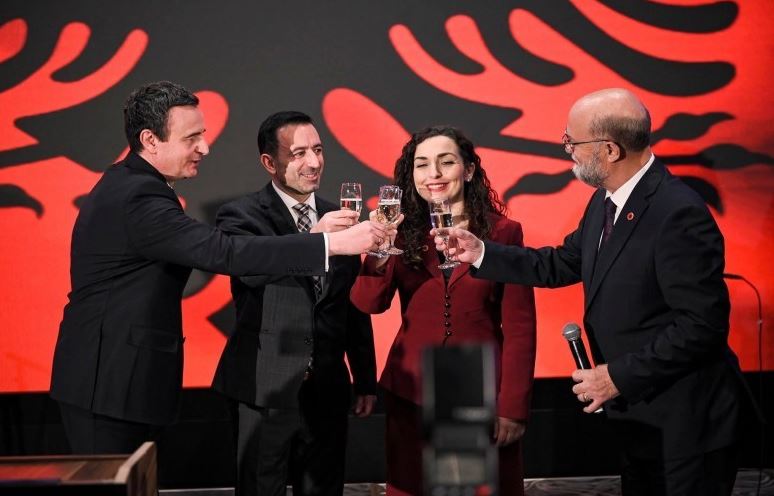 Kryetari i Kuvendit të Kosovës, Dimal Basha, së bashku me presidenten Vjosa Osmani dhe kryeministrin në detyrë, Albin Kurti, mori…